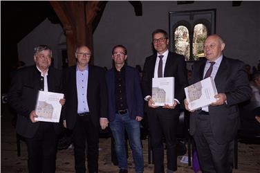 - Buchpräsentation und Verabschiedung heute auf Schloss Tirol - Foto: LPA/Schloss Tirol im Bild 1. Reihe: Erich Ratschiller, Bürgermeister von Tirol, Walter Hauser, Herausgeber, Alt-LH, Paula Mair, Martin Mittermair, Herausgeber, LH, LR, Leo Andergassen, Direktor Schloss Tirol; hintere Reihen: Autoren und wissenschaftliche Mitarbeitende [JPG 17 KB]