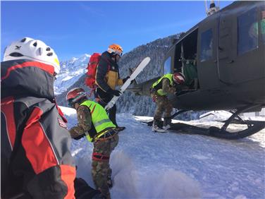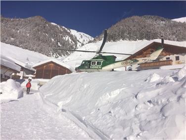 - Mit zwei Transporthubschraubern des Heeres und einem Hubschrauber der Carabinieri sind jeweils sieben Personen pro Flug evakuiert word. Foto: LPA/Berufsfeuerwehr [JPG 16 KB]