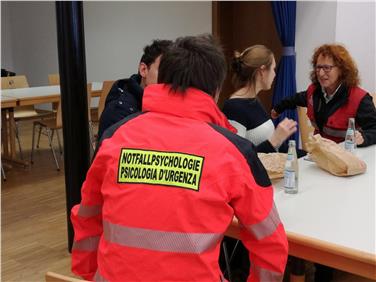 - Das Auffangzentrum im Vereinshaus von St. Valentin auf der Haide war für 200 Personen gerüstet; auch die Notfallseelsorger und -psychologen standen bereit. Foto: LPA/Betreuungszug Weißes Kreuz-Zivilschutz [JPG 19 KB]