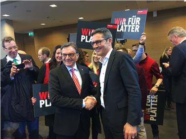 LH Kompatscher gratuliert dem Tiroler LH Günther Platter zum ausgezeichneten Wahlergebnis. Foto: LPA/Jakob Glaser