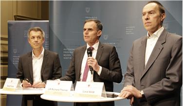 - Präsentierten die Entwicklung der Luftwerte im Bereich Feinstaub, Benzo(a)pyren und Stickstoffdioxid (v.l.): Georg Pichler, LR Theiner, Luca Verdi. Foto: LPA/Pichler [JPG 15 KB]