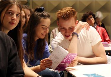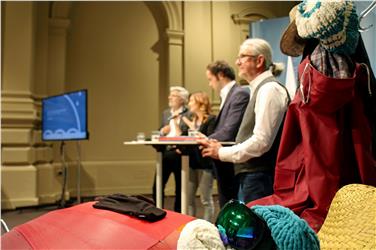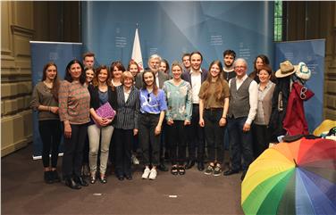 - An der heutigen Vorstellung nahm auch eine Schülergruppe des Kunstgymnasiums Bozen teil, die an der Gestaltung der Materialen beteiligt waren - Foto:LPA/Peter Natter [JPG 19 KB]