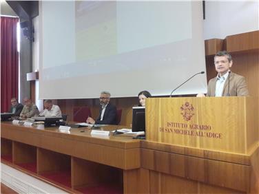 Über das Projekt "Environment, Food and Health" EFH will dei Europaregion Tirol-Südtirol-Trentino Fettleibigkeit und Übergewicht bekämpfen und Gesundheit bis ins hohe Alter fördern. Der Präsident der Stiftung "Edmund Mach", Andrea Segrè, Professor Fulvio Mattivi, vom Zentrum "Agricoltura. Alimenti. Ambiente" der Universität Trient, der Leiter des Dienstes für Diätetik und klinische Ernährung des Trentiner Sanitätsbetriebes, Carlo Pedrolli, der Direktor des Forschungszentrums Laimburg, Michael Oberhuber, und Werner Zwerschke von der Universität Innsbruck haben das Projekt heute (11. Juni) in der Stiftung "Edmund Mach" in San Michele all'Adige vorgestellt.