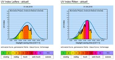 - Auf der Webseite ist der aktuelle UV-Index im Tagesverlauf für die Messstationen Leifers und Ritten und viele weitere Daten abrufbar. Foto: Landesagentur für Umwelt [JPG 17 KB]