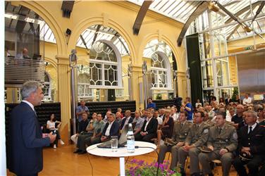 Vor Abteilungs- und Amtsdirektoren, Mitarbeitenden und Interessensvertretern der verschiedenen Bereiche blickte Landesrat Schuler im Innenhof des Palais Widmann auf die vergangenen fünf Jahre zurück. Foto: LPA/Maja Clara