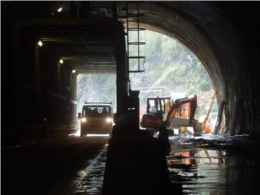 Vergangene Woche erfolgte der Durchstich des neuen Teils des Tunnels. Um den Tunnel statisch zu verstärken, wurde die Tunnelinnenschale aufgeweitet und mit Selbstbohrankern und Tunnelbögen verstärkt und mit Spritzbeton gesichert. Da bei laufenden Verkehr gearbeitet werden musste, kam, so der Direktor des Amtes für Straßenbau West Johannes Strimmer, ein innovatives Konzept zum Tragen. Der Arbeitsbereich wurde durch ein 30 Meter langes Schutzgerüst aus Stahl gesichert. Dieses war auf Schienen geführt. Es wurde jede Nacht währende der kurzen Nachtsperre zurückbewegt, um die Sicherungsarbeiten oberhalb der Fahrbahn abschließen zu können. Daraufhin wurde es täglich etwa 1,3 Meter weiter vorbewegt, um den nächsten Abschnitt zu sichern. Das Land investiert in diesen Sicherheitseingriff 3,5 Millionen Euro.