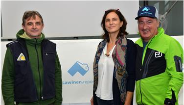 - Führungskräfte der Lawinenwarndienste (v.li.) Trenti (Trentino), Munari (Südtirol), Mair (Tirol). Foto: LPA/Daldos [JPG 16 KB]
