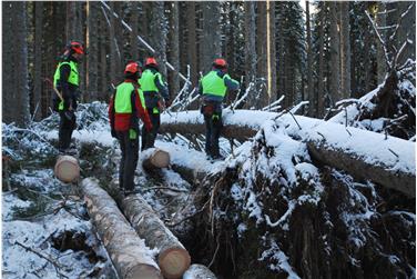 Nun organisieren die Agentur Landesdomäne und die Abteilung Forstwirtschaft für Waldbesitzer und Interessierte aus den vom Windwurf betroffenen Gemeinden Schulungstage zur Windwurfaufarbeitung. Dabei wird vermittelt, wie die Gefahrenquellen nach einem Windwurf erkannt und richtig bewertet werden. Zudem werden auf lokalen Windwurfflächen die Grundregeln für sicheres Arbeiten sowie geeignete Schnitttechniken erprobt.