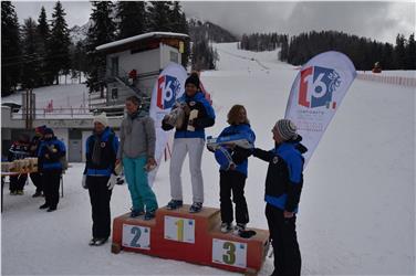 - Siegerehrung nach dem Riesentorlauf, Kategorie Damen, durch Zivilschutz-Chef Pollinger (re.). Foto: LPA/Nicola Marangoni [JPG 18 KB]