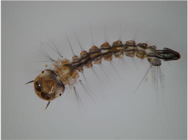 - Aus einer einzigen Tigermücke, die im Frühjahr ausschlüpft, können im Laufe der Sommermonate Milliarden von Tigermücken entstehen. Im Bild eine Tigermückenlarve. Foto: LPA/Edith Bucher [JPG 8 KB]