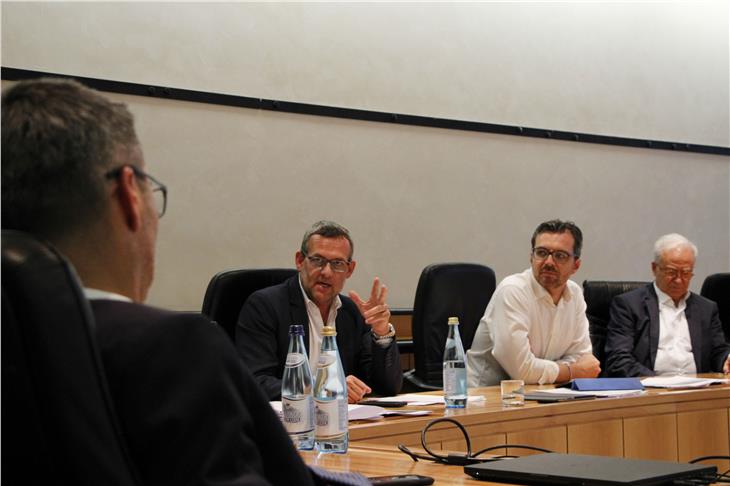 Die Verlegung der Brennerautobahn A22 war das zentrale Thema beim Treffen zwischen Landeshauptmann Arno Kompatscher, seinem Stellvertreter Giuliano Vettorato und dem Gemeindeausschuss von Leifers mit Bürgermeister Christian Bianchi und Vizebürgermeister Giovanni Seppi an der Spitze am 16. Juli in Bozen.