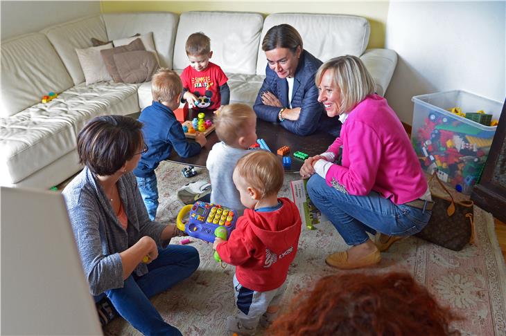 Sonja Spitaler ist eine von 237 aktiven Tagesmüttern in Südtirol, die im Jahr 2018 insgesamt 1845 Kinder betreut haben. Für sie sei es ein Privileg zu Hause und mit Kindern in einer "wunderbaren Altersgruppe" arbeiten zu dürfen. "Es geht vor allem darum, dass sich die Kinder wohl fühlen und gerne Zeit bei und mit der Tagesmutter oder in Kita und Hort verbringen", hob Landesrätin Deeg. Dies habe man bei den heutigen Besuchen, unter anderem bei Tagesmutter Sonja Spitaler in Leifers, eindeutig feststellen können. Tagesmütter und Kleinkindbetreuerinnen leisten tagtäglich einen tollen Job, der jedoch von der Gesellschaft stärker wertgeschätzt werden müsste. "Es braucht dringend einen Zusatzvertrag, um Kleinkindbetreuer besser zu entlohnen", betont die Familienlandesrätin.