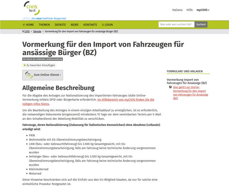 Die Operation der Vormerkung besteht aus fünf sehr einfachen Schritten. Am Ende des Prozesses wird ein Dokument mit der Bestätigung generiert. Darin sind auch alle wichtigen Informationen enthalten, etwa welche Dokumente die Antragssteller mitbringen oder übermitteln müssen, damit die Einfuhr oder die Umschreibung erfolgreich abgewickelt werden kann. Der Dienst wurde von der Südtiroler Informatik AG SIAG entwickelt.