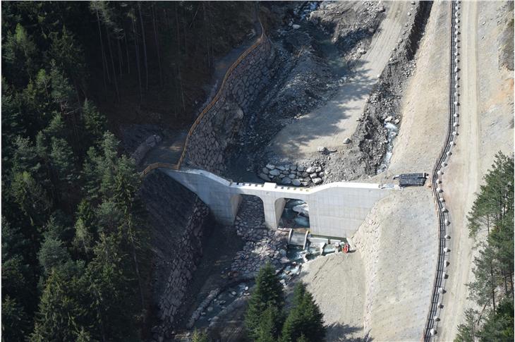 Das vorgelagerte Auffangbecken kann im Ereignisfall bis zu 40.000 Kubikmeter Geschiebematerial und Wildholz zurückhalten. Vorarbeiter Alex Messner und sein Bautrupp haben nun die Arbeiten nach einem Projekt von Amtsdirektor Alexander Pramstraller und Jürgen Schäfer abgeschlossen. Auf der orographisch linken Seite der Sperre wurde eine Fischtreppe eingebaut, um den Fischen ungehindertes Passieren zu ermöglichen.