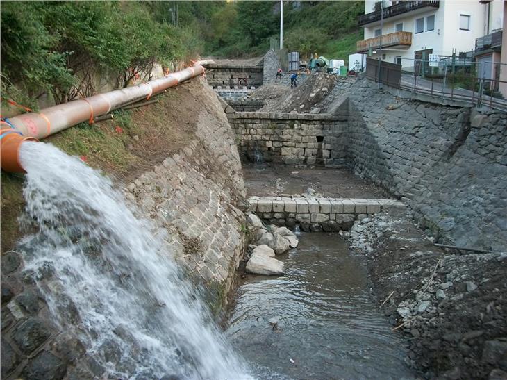 Nach einem Projekt und unter der Bauleitung von Andreas Vettori vom  Landesamt für Wildbach- und Lawinenverbauung Nord in der Agentur für Bevölkerungsschutz sanieren die Arbeiter mit Vorarbeiter Hubert Rungger die bestehenden Querwerke und die Ufermauern im Gonderbach, der durch Kollmann fließt. Nach der Reinigung der Mauern kommen jetzt die Querwerke zum Vorschein. "Damit", erläutert Bauleiter Vettori, "wird das Schadensausmaß erst sichtbar." Die Schäden sind Abnutzungserscheinungen und werden deshalb mittels Instandhaltungsprojekt und nicht über ein Bauprojekt beseitigt.