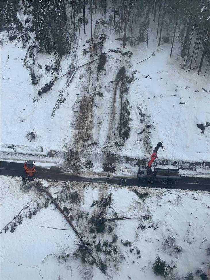 Landesweit sind 48 Staatsstraßen und Landesstraßen noch gesperrt sowie alle Nebenstraßen in höheren Lagen. Die Mitarbeiter des Straßendienstes arbeiten intensiv, um die Straßen ehestmöglich wieder zu öffnen