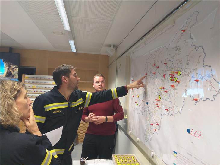 Das Lagezentrum bei der Berufsfeuerwehr in Bozen ist rund um die Uhr aktiviert und behält die Situation landesweit im Auge. Die Landesnotrufzentrale disponiert Hunderte Einsätze, und die Verkehrsmeldezentrale arbeitet ebenfalls auf Hochtouren, um die Bürgerinnen und Bürger über die Situation auf Südtirols Straßen zu informieren.