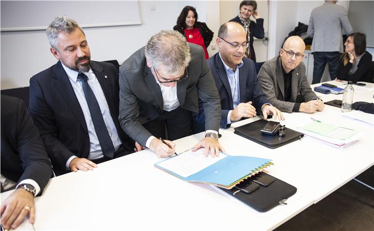 Die öffentliche Delegation um Generaldirektor Alexander Steiner und die Mehrheit der Gewerkschaften des öffentlichen Dienstes haben heute Mittag (27. November) den Entwurf eines BÜK-Teilvertrags unterzeichnet. "Der heute besiegelte Teilvertrag ist das Ergebnis langer und intensiver Verhandlungen und stellt eine Lösung für 33.500 Mitarbeitende im öffentlichen Dienst dar", erklärte der Generaldirektor.  "Die öffentliche Hand stellt über diesen Teilvertrag fast 175 Millionen Euro bereit, 127 davon für Landes- und Sanitätspersonal. Das sind fast zwei Drittel der für den Dreijahreszeitraum 2019-21 insgesamt zur Verfügung gestellten Mittel", rechnet Steiner vor.