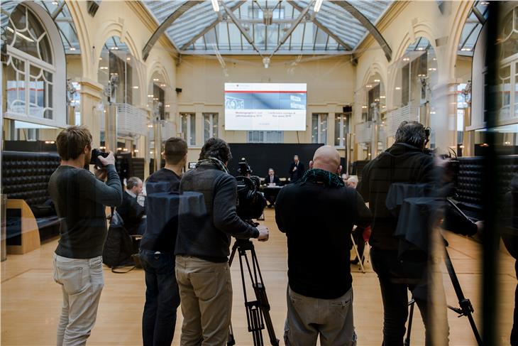 - Ob Brennerautobahn, Autonomie und Gesundheit oder Wolf: Die Medienvertreter stellten dem Landeshauptmann Fragen aus verschiedensten Bereichen. (Foto: LPA/Claudia Corrent) [JPG 74 KB]