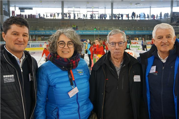 - (v.l.) Reinhard Eberl, Sportabteilung Land Tirol, Laura Savoia, Sportabteilung Land Südtirol, Günther Andergassen, Präsident Verband Südtiroler Sportvereine, ASVÖ Tirol-Präsident Hubert Piegger. (Foto: ASVÖ Tirol) [JPG 59 KB]