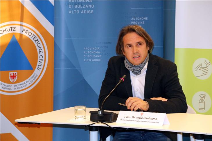 - Der medizinische Einsatzleiter Prim. Marc Kaufmann bei der heutigen Pressekonferenz. (Foto: LPA/Fabio Gobbato) [JPG 42 KB]