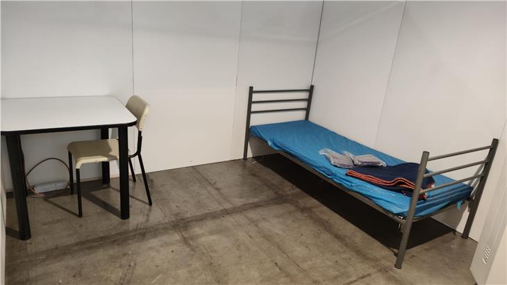 Die Agentur für Bevölkerungsschutz hat im Auftrag der Landesregierung für die Obdachlosen der Stadt Bozen Möglichkeiten zur vorübergehenden Unterbringung gesucht. Eine geeignete Fläche wurde bei der Messe Bozen ausfindig gemacht. Sie bietet ungefähr 100 Menschen Platz und besteht aus einzelnen Räumen mit je einem Bett und einem Tisch mit Stuhl. Die Räumlichkeiten wurden auch mit den notwendigen Nasszellen ausgestattet.