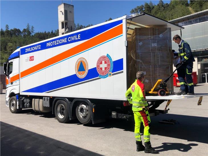 15.000 Schutzanzüge aus Tirol sind gestern (22. April) in Bozen angekommen. "Diese konkrete Hilfe ist in der aktuellen Situation von größter Bedeutung", betont Bevölkerungsschutzlandesrat Schuler.