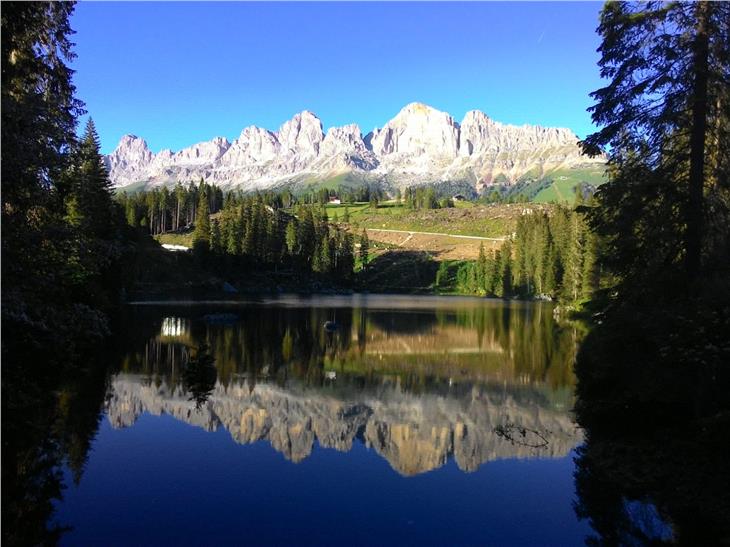 - Wunderbare Stimmung in einem meteorologisch ausgeglichenen Monat: Der Karersee an einem Abend im Juni 2020. (Foto: LPA/privat/EK) [JPG 63 KB]