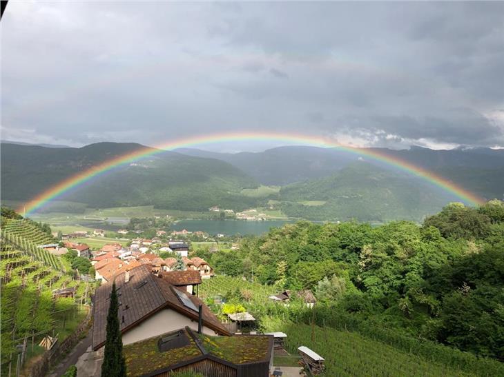 - Ein Regenbogen - hier im Juni 2020 am Kalterer See - vereint Gegensätze und verbindet sie. (Foto: LPA/privat/EF) [JPG 58 KB]