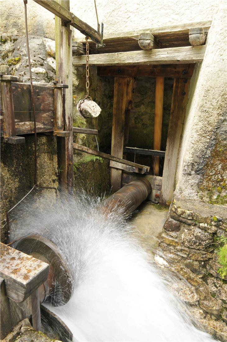 - Voller Druck auf die Wassermühle: Natürliche Energiegewinnung im Naturparkhaus Schlern-Rosengarten (Rast auf der Wanderung durch den Naturpark Schlern-Rosengarten (Foto: LPA/Naturpark Schlern-Rosengarten) [JPG 154 KB]