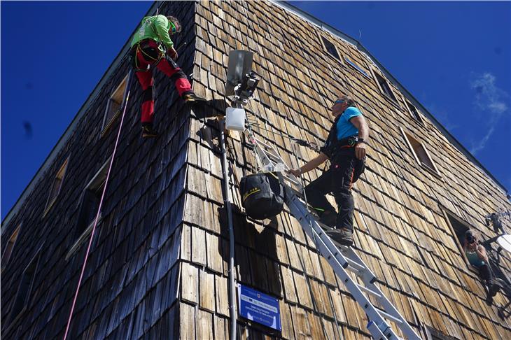 - Aubau der Webcam am Becherhaus (Foto: Amt für Hydrologie und Stauanlagen/Roberto Dinale) [JPG 92 KB]