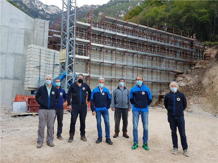 Tramins Bürgermeister Wolfgang Oberhofer begleitete die Delegation zur Rückhaltesperre im Höllentalbach: Der Gefahrenzonenplan für die Gemeinde Tramin verweist auf die Gefahr durch den Höllentalbach. Um dieses Überschwemmungsrisiko für das Dorf zu reduzieren, wurde im vergangenen Jahr im Mittellauf des Höllentalbaches eine neue Rückhaltesperre mit einem Rückhaltevermögen von rund 25.000 Kubikmeter Geschiebematerial errichtet, und zwar unterhalb des Wanderweges Richtung Zoggler-Wiese. Heuer wird kurz oberhalb dieses Standortes eine zweite Rückhaltesperre mit demselben Fassungsvermögen gebaut. Im Zuge der Arbeiten entstehen zudem neue Einlaufsperren und Uferschutzmauern. Die Kosten für das Projekt, für das Hansjörg Prugg verantwortlich zeichnet, der auch die Bauleitung innehat, belaufen sich auf 800.000 Euro.