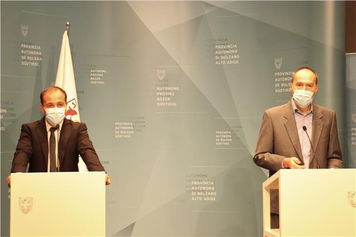 - Landesrat Vettorato und Amtsdirektor Verdi bei der heutigen Pressekonferenz (Foto: LPA/Thomas Laconi) [JPG 31 KB]