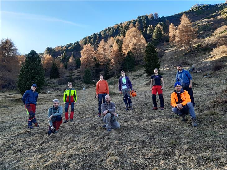 In Zusammenarbeit mit der Fachschule für Landwirtschaft Dietenheim und dem Forstinspektorat Bruneck hat man im Naturpark Rieserferner-Ahrn daher eine Fläche gefunden, wo zukünftig die Mahd wieder aufgenommen werden sollte. Aufgeteilt auf drei Praxisgruppen und begleitet von den Lehrern Martin Oberleiter und Hartmann Kolhaupt entnahmen dort die Schülerinnen und Schüler der 3. Klasse der Fachschule für Landwirtschaft in Dietenheim Jungbäume und Sträucher, um wieder Platz zu schaffen und den Wiesencharakter wiederherzustellen. Hauptaugenmerk wurde auf das Schaffen von Strukturen und unregelmäßigen Randlinien gelegt.