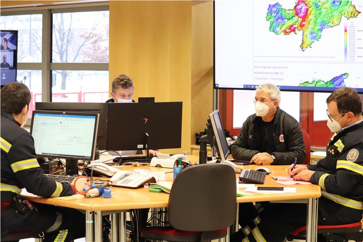 In täglichen Bewertungskommissionen wird seit vorgestern (wie berichtet) im Landeswarnzentrum die Situation von verschiedenen Seiten beleuchtet. Neben dem Bevölkerungsschutz und dem Landeswarnzentrum geben bei der Sitzung Vertreter des Landesamtes für Meteorologie und Lawinenwarnung, des Amtes für Hydrologie und Stauanlagen, der Wildbachverbauung, des Zivilschutzes, der Landesforstabteilung, des Landesamtes für Geologie, der Berufsfeuerwehr, der Landesverkehrsmeldezentrale, der Landesnotrufzentrale und des Landesstraßendienstes ihre Bewertung ab, zum Teil via Videokonferenz.