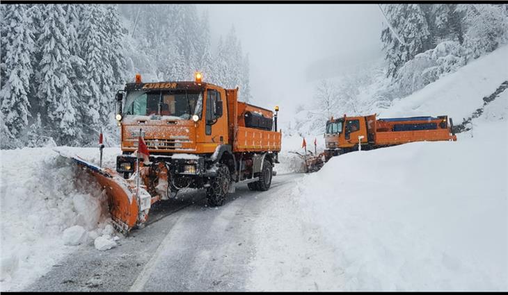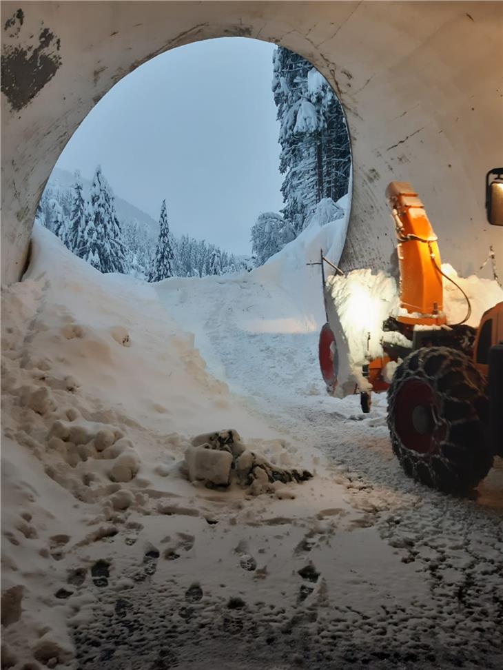 - Der Landesstraßendienst arbeitet weiterhin an der Öffnung der Verkehrswege, das Bild entstand heute im Tauferer Ahrntal. (Foto: Landesstraßendienst) [JPG 54 KB]