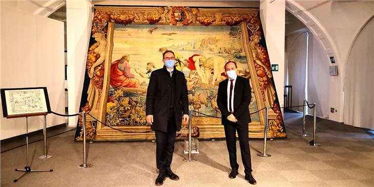 Landeshauptmann Kompatscher, der in der Landesregierung auch für den Bereich Museen Verantwortung trägt, betonte, wie wertvoll Südtirols Beteiligung an den Initiativen zum 500. Todestag des bedeutenden italienischen Renaissancekünstlers sei: "Diesen prestigeträchtigen Wandteppich in Südtirol zeigen zu dürfen, hat uns mit Stolz erfüllt, ebenso wie die Tatsache, dass wir ihn wegen der coronabedingten Schließung der Kulturstätten in die Wohnungen vieler Menschen projeziert haben. Die neuen Wege der Kulturvermittlung, die im Zusammenhang mit der Coronavirus-Pandemie eingeschlagen wurden, werden dem gesamten Sektor auch nach dem Ende des Notstands zu gute kommen."