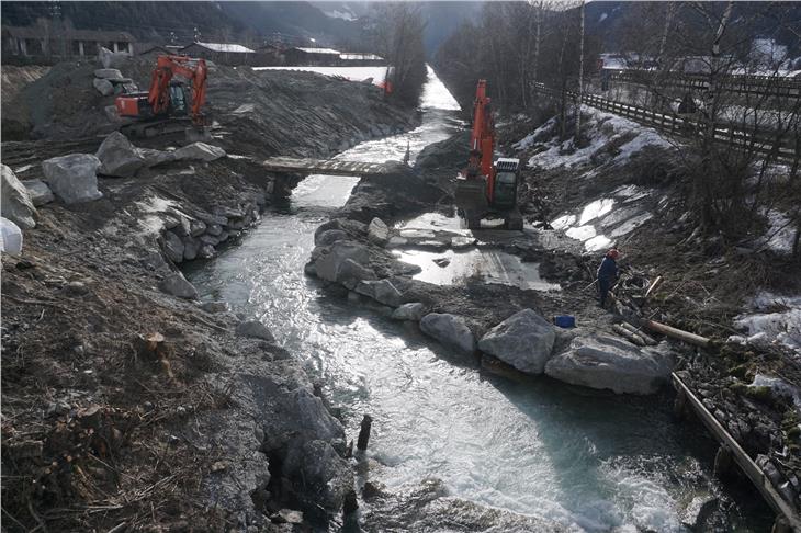 Unmittelbar neben Kematen bei Sand in Taufers wird die Messstelle zur Erfassung der Wasserstände und der Wasserführungen der Ahr saniert und ausgebaut, erläutert Bauleiter Stefan Ghetta vom Amt für Hydrologie und Stauanlagen. Diese Pegelmessstelle ist seit 1979 in Betrieb und bedarf nun dringender außerordentlicher Wartungsarbeiten, damit die Zuverlässigkeit der Messungen gewährleistet bleibt und die Strukturen und Messeinrichtungen den aktuellen Sicherheitsbestimmungen angepasst werden. Die Arbeiten führt der Bautrupp mit Vorarbeiter Hubert Ignaz Brugger aus, Baustellenleiter ist Thomas Gamper vom Amt für Wildbach- und Lawinenverbauung Ost. Nach den Uferverbauungsarbeiten an der Messstelle wird ein Pegelhaus für die Unterbringung der Messgeräte und moderne Messeinrichtungen für die Erfassung des Pegelstandes und die Echtzeit-Datenübertragung errichtet. Dabei wird auf den Schutz des Ökosystems und die Durchgängigkeit des Gewässers geachtet, wie vom Wassernutzungsplan vorgesehen. Das Budget für diese Pegelmessstation beläuft sich auf 225.000 Euro.