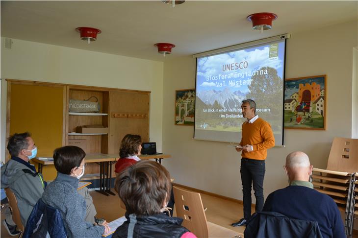 Wie ein Biosphärenreservat in der Praxis funktioniert, berichtete Angelika Abderhalden von der Geschäftsstelle UNESCO Biosfera Engiadina Val Müstair. Biosphärenreservate werden im Rahmen des UNESCO-Programms "Der Mensch und die Biosphäre" (MAB) eingerichtet. "Dort stehen der Schutz der biologischen Vielfalt und der natürlichen Ressourcen im Einklang mit deren nachhaltigen Nutzung", erklärte Abderhalten und brachte einige Best Practices aus dem Engadin-Val Müstair, das sich seit Juni 2017 Biosphärenreservat nennen darf.