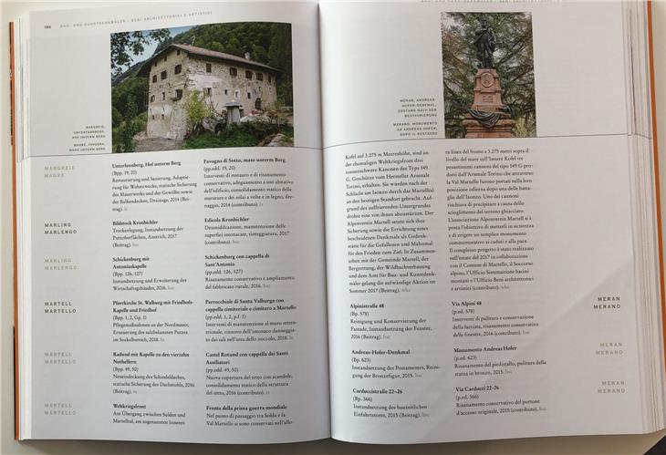 Die Tätigkeit des Landesdenkmalamtes mit seinen drei Ämtern, jenem für Bau- und Kunstdenkmäler, jenem für Archäologie und dem Südtiroler Landesarchiv, dokumentiert der neu erschienene Band Denkmalpflege 2014-2018, den das Landesdenkmalamt herausgebracht hat und der im Buchhandel erhältlich ist. Die neue Publikation wird in Kürze auch ich digitaler Form auf den Landeswebseiten zu Kunst und Kultur unter Denkmalpflege zur Verfügung stehen.