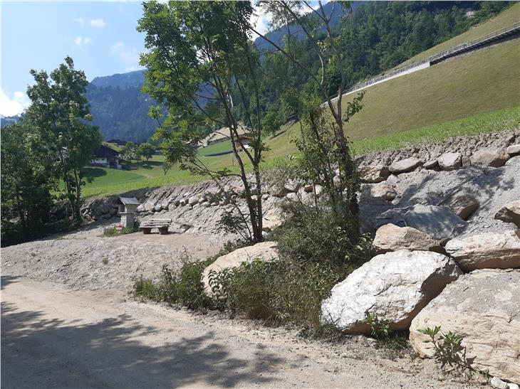 In Zusammenarbeit mit der Gemeindeverwaltung hat der Funktionsbereich Wildbachverbauung in der Agentur für Bevölkerungsschutz außerdem den etwa 600 Meter langen Zufahrtsweg von der Sportzone St. Leonhard zum Becken wiederinstandgesetzt, der stark in Mitleidenschaft gezogen worden war. Dieser Weg wird in nächster Zukunft auch wieder asphaltiert.