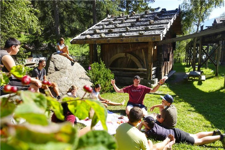 - Erleben und Lernen in der Natur steht im Mittelpunkt der Erlebniswochen im Naturpark und im Nationalpark, wie hier 2020 im Besucherzentrum Lahnersäge in St. Gertraud/Ulten. (Foto: LPA/Besucherzentrum Lahnersäge) [JPG 95 KB]
