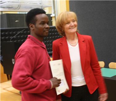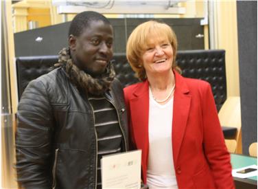 - L'assessora Stocker ha consegnato gli attestati ai richiedenti asilo che hanno sostenuto il testo per l'accertamento delle competenze professionali Foto: USP/fg [JPG 24 KB]