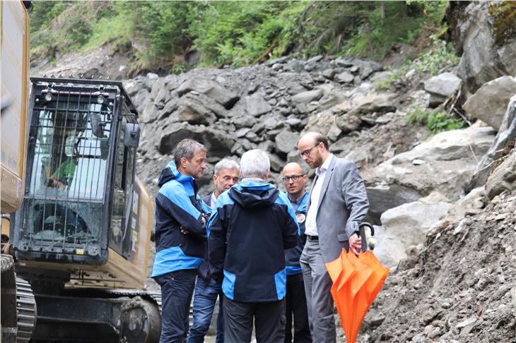 - Schindlergraben a Fortezza (da sinistra) Pollinger, il sindaco Klapfer, Pramstraller, Schuler, Walder. Foto: Agenzia per la Protezione civile/mac [JPG 77 KB]