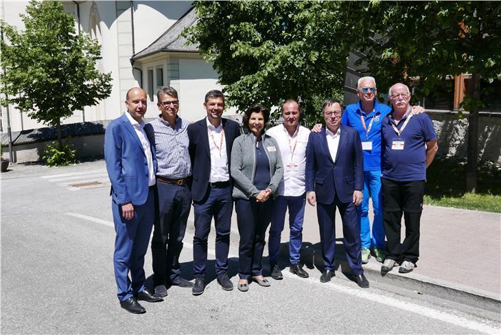 - Foto di gruppo degli organizzatori e delle autorità presenti alla manifestazione di S. Vigilio di Marebbe per i 10 anni delle Dolomiti nel patrimonio mondiale dell'UNESCO Foto: USP [JPG 102 KB]