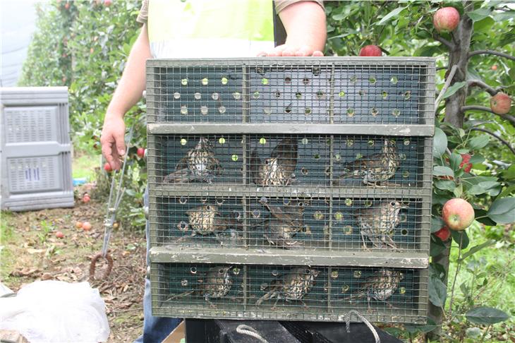 Il Corpo forestale della Provincia di Bolzano, dopo un lungo appostamento iniziato alle prime ore del mattino di domenica 1° settembre, ha fermato nella zona di Termeno un bracconiere originario della Toscana che stava catturando in maniera illecita dei tordi. L'uomo è stato denunciato all'autorità giudiziaria per il reato di uccellagione, i 46 tordi bottaccio di cui è stato trovato in possesso sono stati immediatamente liberati eccetto uno, che è stato consegnato al Centro avifauna per le cure necessarie. "Il sistema utilizzato - spiegano gli esperti del Corpo forestale - era particolarmente avanzato. Il bracconiere, infatti, aveva installato lungo i meleti delle reti a maglia fine per più di 100 metri, e con l’ausilio di richiami acustici elettronici induceva i tordi a muoversi tra i filari finendo impigliati nelle reti".