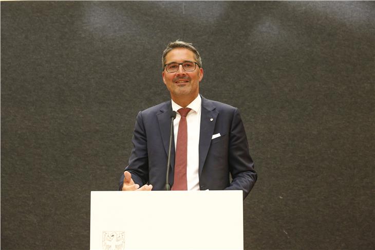 Quello che 100 fa ebbe inizio come esempio di ingiustizia e procurò grandi sofferenze, oggi è esempio di convivenza e assegna a chi fa politica il compito di continuare ad agire con senso di responsabilità. Questo il messaggio di fondo degli interventi dei presidenti dell’Euregio, Arno Kompastcher, Günther Platter e Maurizio Fugatti in un cortile di Palazzo Widmann gremito per 100 80 50 Futuro-Memoria l’evento che ha dato il titolo alla Giornata dell’autonomia. Il 2019 è, infatti, l’anno in cui ricorrono i 100 dall’approvazione del trattato di Saint-Germain, gli 80 anni dalle opzioni e i 50 anni dall’approvazione del pacchetto. Passando per il ricordo dei traumi, delle lacerazioni, dei momenti bui del passato, lo sguardo dei tre presidenti è andato all’attualità e alle sfide per il futuro. “Bisogna riconoscere che la nostra terra – ha detto Arno Kompatscher – da un certo momento in poi ha avuto anche fortuna. Alludo alla fortuna che siano arrivate ad avere responsabilità di governo, persone dotate del coraggio del compromesso”.  Il presidente altoatesino ha quindi sottolineato che l’autonomia si basa sul concetto di responsabilità e per il futuro si è augurato che l’ispirazione venga dai valori che hanno ispirato i predecessori: pace, uguaglianza, giustizia, “valori che devono essere collegati ai concetti di solidarietà e rispetto”. La sfida posta dalle migrazioni che hanno fatto arrivare in Alto Adige persone di molte etnie “ci pone l’obiettivo – ha aggiunto - di rafforzare la coesione sociale e indirizzare lo sviluppo economico in modo che sia ecologicamente sostenibile”. E tutto questo non va fatto, secondo Kompatscher, dando diritti di precedenza, “non America first, non "prima gli italiani", ma tutti insieme”.