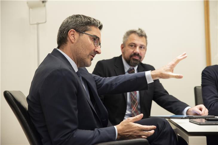Il presidente della Provincia Arno Kompatscher ha incontrato oggi i vertici delle organizzazioni sindacali del territorio, in risposta alla richiesta di un confronto urgente sui temi del lavoro e delle politiche abitative per il 2020. Soddisfazione è stata espressa dai sindacati per l’accoglimento da parte dell'amministrazione delle richieste relative al mantenimento delle agevolazioni IRAP e per l'ipotesi di creare un fondo destinato alle politiche della sicurezza sul lavoro. All'incontro con il direttore generale Alexander Steiner e i vertici della Ripartizione Finanze guidati dal direttore Giulio Lazzara hanno preso parte i segretari confederali Michele Buonerba (Sgb/Cisl), Toni Serafini (Uil/Sgk) e Cristina Masera (Cgil/Agb) insieme ai colleghi Christian Troger (Uil/Sgk) e Alfred Ebner (Cgil/Agb).