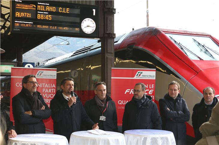 "Il nuovo Frecciarossa per Milano offre un servizio importante. Contribuisce alla raggiungibilità dell’Alto Adige in Italia e in Europa e alla sua competitività economica, scientifica e turistica" ha ricordato il presidente della Provincia Arno Kompatscher questa mattina alla stazione di Bolzano nell’ambito della presentazione ufficiale del servizio, cui hanno partecipato anche l'assessore provinciale Daniel Alfreider, il responsabile delle vendite Trade e Corporate della Divisione Passeggeri di Trenitalia Serafino Lo Piano, il dirigente del Servizio Trasporti pubblici, Roberto Andreatta e direttore regionale di Trenitalia, Roger Hopfinger. La cerimonia è stata accompagnata da quartetto Arundo Donax della scuola di musica Vivaldi. A Trento il presidente della Provincia Maurizio Fugatti ha accolto l'arrivo del primo treno. "Collegamenti ferroviari come questo sono decisivi - anche in vista delle Olimpiadi invernali di Milano-Cortina 2026 - affinché sempre più turisti prenotino la propria vacanza in Alto Adige viaggiando solo su mezzi pubblici a basso impatto ambientale, aiutandoci a diventare sempre più una green region sotto tutti i punti di vista" ha aggiunto Kompatscher. Il collegamento ferroviario diretto da Bolzano per Milano mancava da diversi anni ed era molto atteso dalla popolazione della regione, che nei mesi scorsi ha raccolto migliaia di firme per chiederne il ripristino grazie a una petizione online. I biglietti venduti per questa tratta sono infatti già 2.000.
