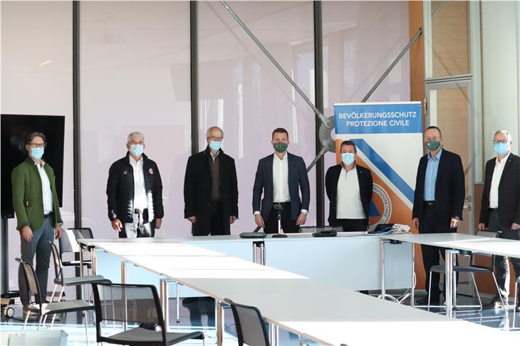 Una delegazione della cancelleria austriaca di Vienna e del governo del Land Tirolo hanno incontrato oggi (22 novembre) a Bolzano i referenti del progetto Test rapidi in Alto Adige Florian Zerzer, direttore generale dell'Azienda Sanitaria dell'Alto Adige, e il referente e coordinatore del progetto Patrick Franzoni insieme al direttore dell'Agenzia per la Protezione civile Rudolf Pollinger.